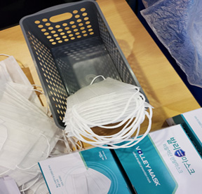 | (주)허니허브 마스크 포장 업무 수행중입니다. (월 170만장, 34,000박스 → 2021년 10배 증가 예정) |
